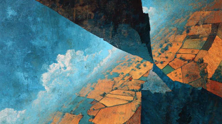 Abstract network diagram showing interconnected systems and information flows, illustrating how complex systems process information in different ways.